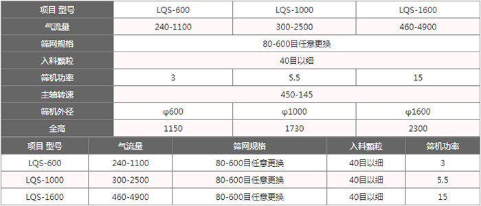 氣流篩篩分效率高、產量大,細度、無超徑混級現象,篩網立裝不荷重、使用壽命長,適應細度范圍廣,全封閉結構,無粉塵溢散,噪音小能耗低、可連續作業,維修方便。