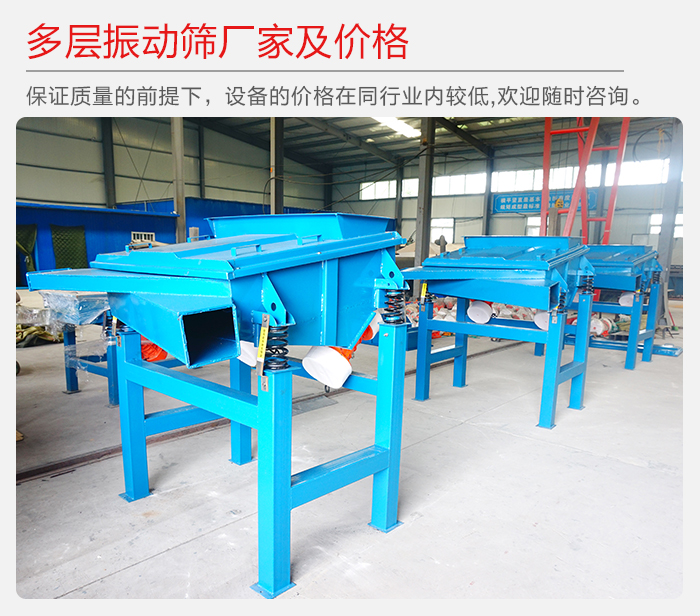 大漢建立以來,有自己大型的礦山設(shè)備生產(chǎn)廠房,完全可以自己生產(chǎn)自己銷售設(shè)備,多層振動篩在保證質(zhì)量的前提下,設(shè)備的價格在同行業(yè)內(nèi)較低,因為我們屬于廠家直銷型的企業(yè),沒有中間商,多層振動篩價格便宜,歡迎用戶隨時來咨詢。