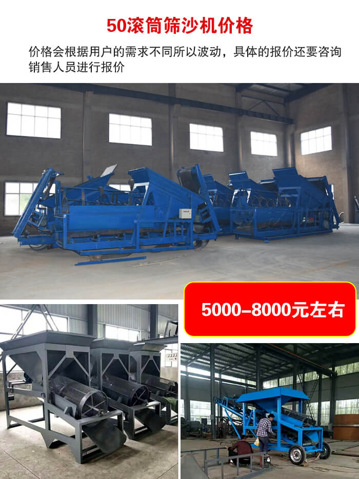 1,50滾筒篩沙機可進行定制改造服務(wù)例如:配有給料機,皮帶輸送機等設(shè)備,所以價格會根據(jù)用戶的需求不同所以波動,具體的報價還要咨詢銷售人員進行報價。